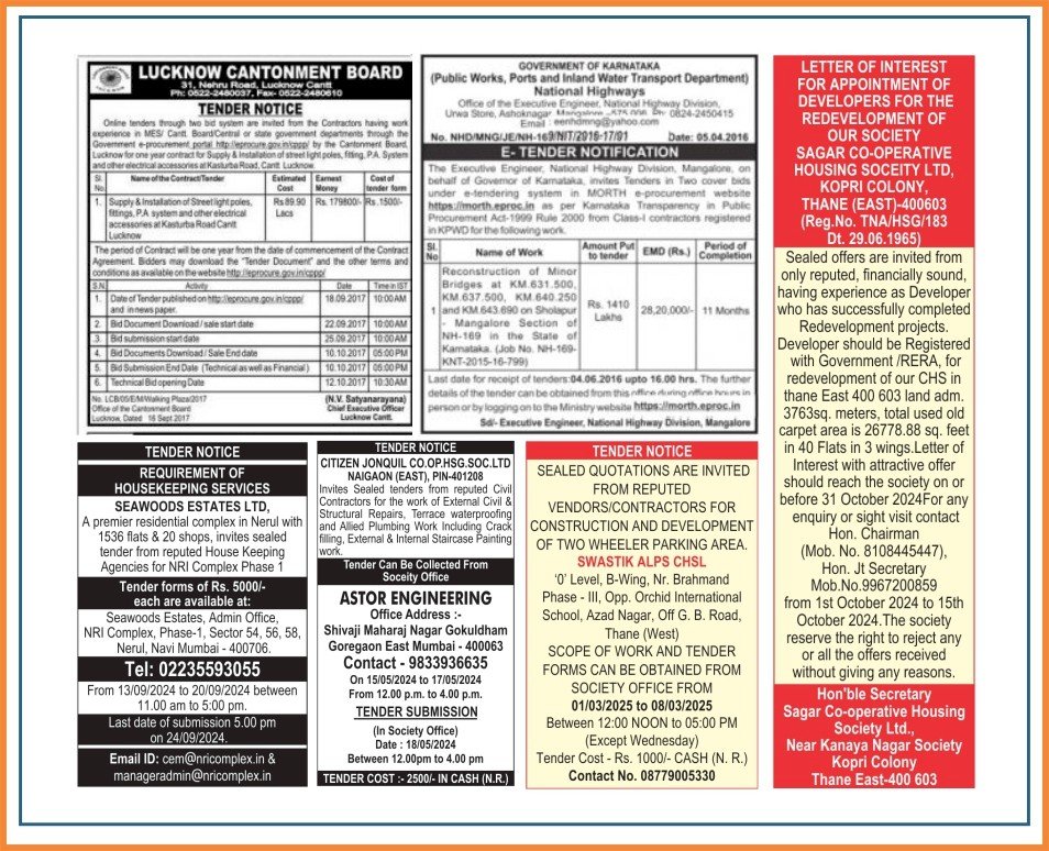 Tender Notice Advertising in The Economic Times lucknow