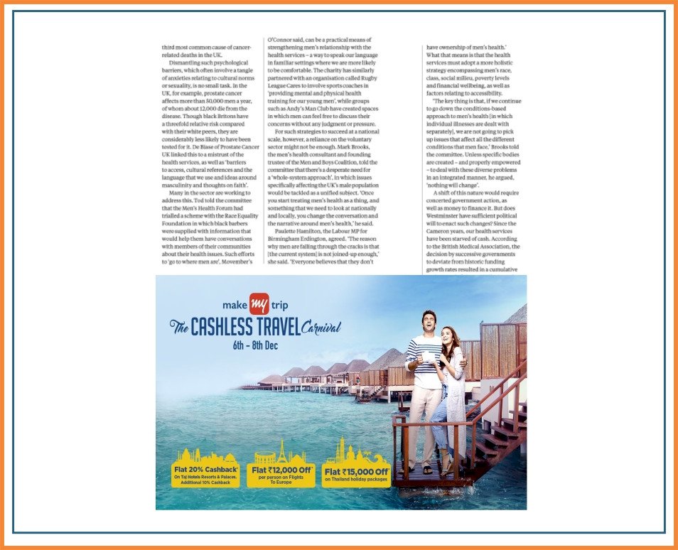 Full Page Ads span an entire page of the magazine and come in two types: Bleed Ads and Non-Bleed Ads. In Bleed Ads, the brand's creative artwork extends seamlessly to the edge or border of the page, without any margins. In Non-Bleed Ads, the brand artwork is enclosed within a border, maintaining margins on all four sides and not extending to the edge of the page.