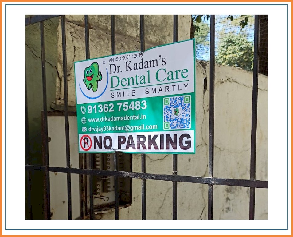 The advertisement will appear on Metal or Teen sheet material No Parking boards, typically measuring 18 inches in width and 12 inches in height. No Parking Board Advertising was done on the society gate. No Parking Board advertising offers a unique and eye-catching way to promote your brand or message.