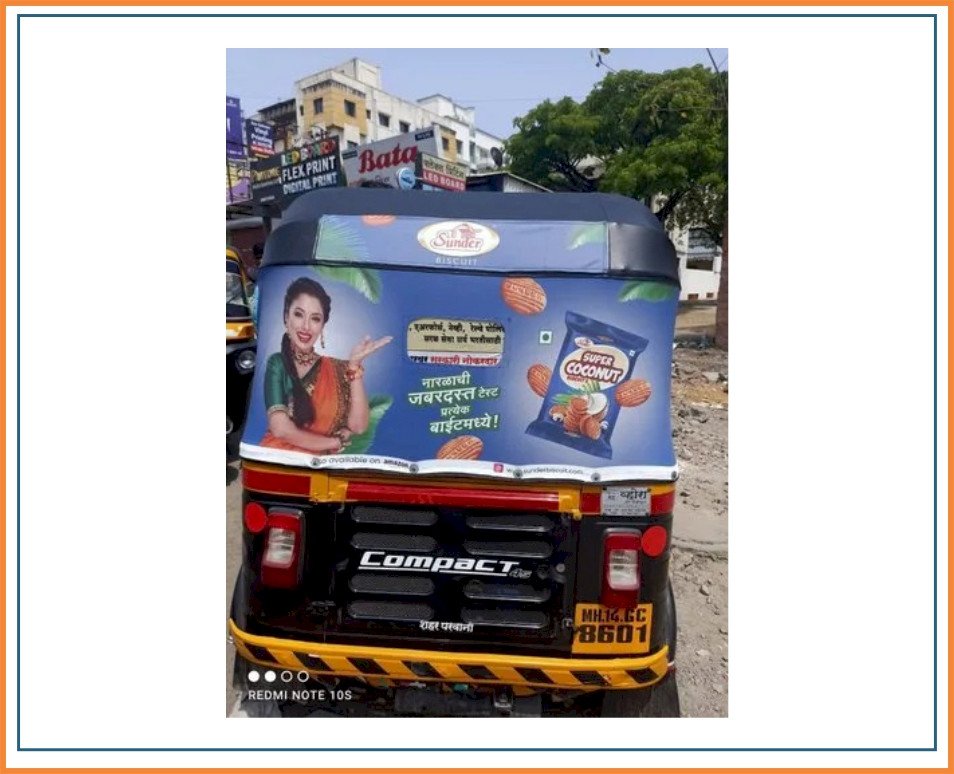 Using auto rickshaw hood branding in Akola may be a unique and cost-effective method to market your business on the road, exposing your brand to a huge number of people on a regular basis. One of the most innovative and cost-effective ways to sell your business on the go in Akola is to use auto rickshaw hood branding, which has the ability to reach thousands of viewers each day.