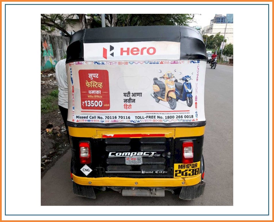 Looking for Auto Rickshaw Advertising in Solapur? Auto rickshaw advertising in Solapur often comprises auto rear panels and auto hood coverings. Auto advertising is smaller in size, cheaper, and has a greater reach and interaction.